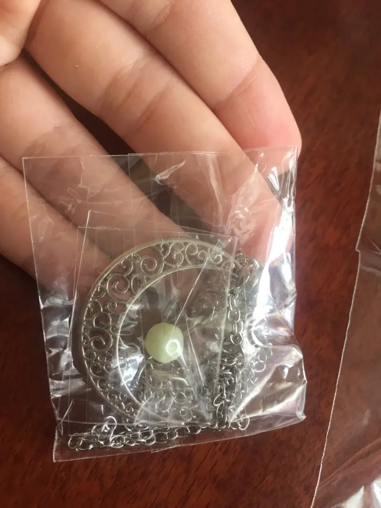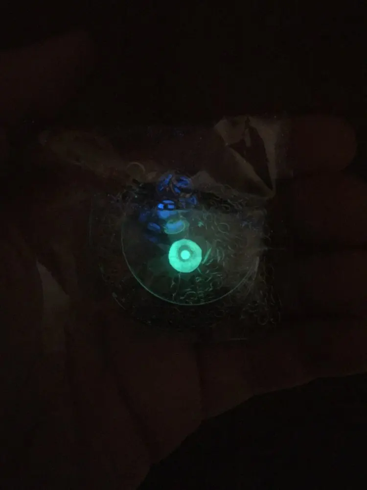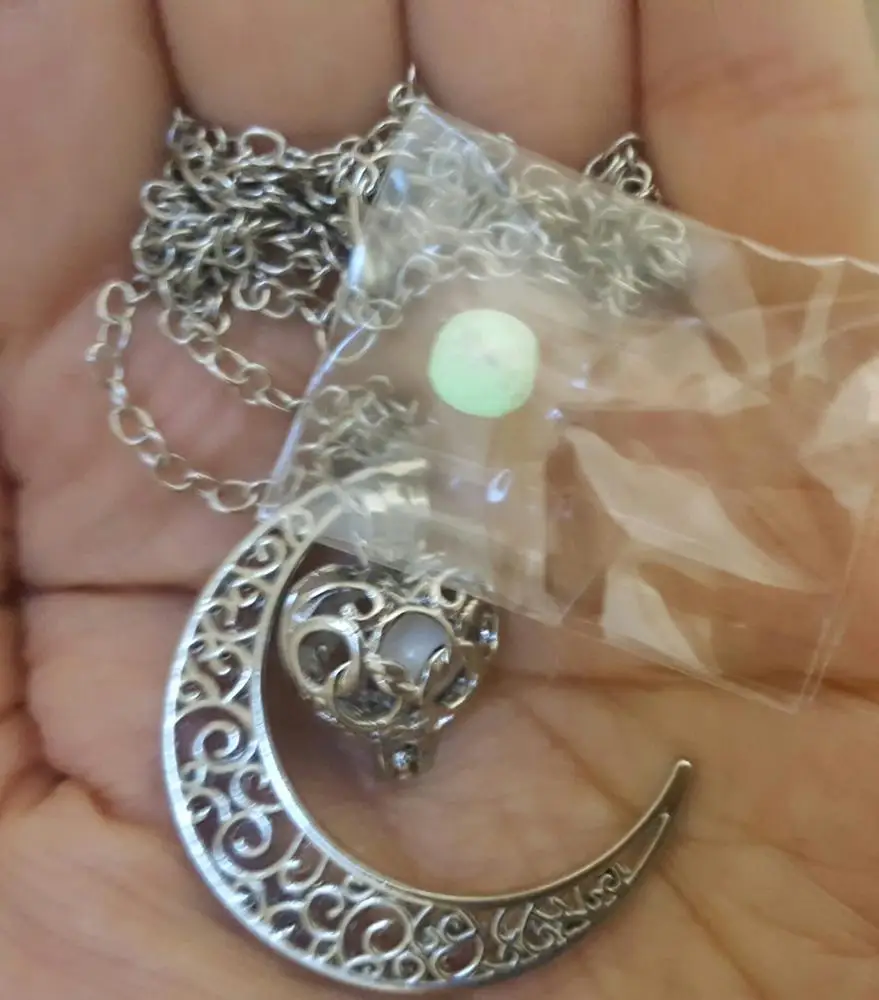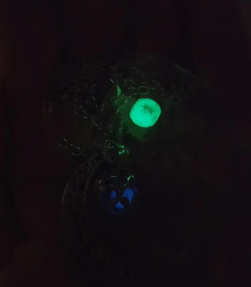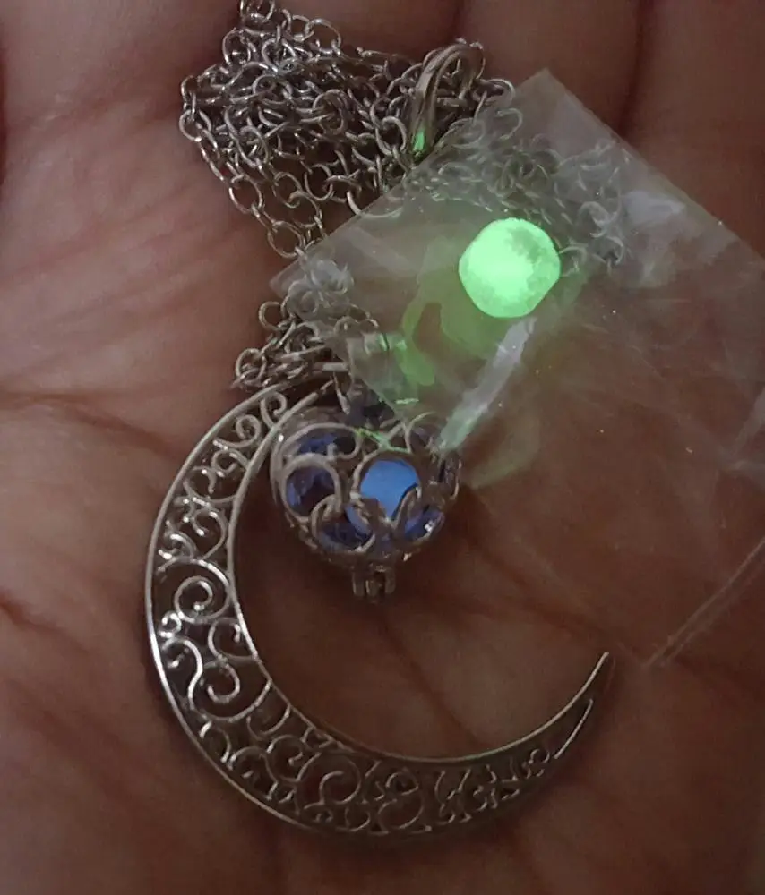 Este collar de Luna es increíble! Trae dos bolas de colores para cambiar, y brillan bastante! Incluso en lugares no tan oscuros, (Se recargan a la luz del sol o artificial) recomiendo este producto