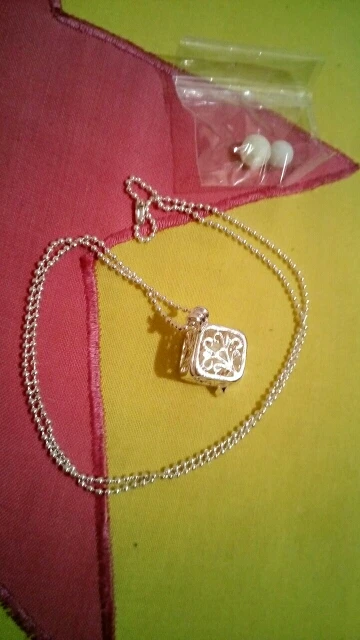 ¡Muy contenta con el producto! ;) Viene con 3 bolitas diferentes (la del propio colgante y 2 más) a mí me han tocado 2 verdes y 1 azul. La única pega es que se deshacen un poquito y sueltan partículas, pero brillan muy bien. El colgante se abre al sacarlo de la cadena. Y el diseño es muy bonito y llamativo. 100% Recomendado.