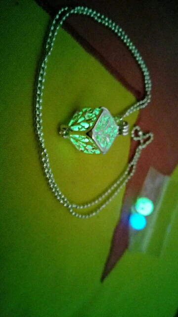 Es muy bonito, aunque muy engorroso de cambiar la bolita fluorescente (no es nada fácil). En la foto del anuncio se ven 3 bolitas de luz, pero sólo trae 2. La bolita que más brilla es la verde, la azul apenas se ve, pero el colgante queda muy chulo tanto cuando brilla como cuando es de día y no brilla. Por cierto, la luz fluorescente no dura mucho tiempo, pero se ve espectacular. Muy recomendable, yo estoy encantada con él.